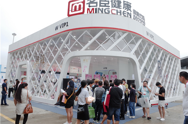 本次展会,名臣健康依旧在展会“C位”W VIP1 亮相,展馆以简洁、科技为设计理念,整体效果犹如鸟巢般的立体感,赋予展馆震撼力,形成一定的视觉冲击,大气而典雅。馆内以展示盈蔻鱼子酱、Ra玻尿酸主色调为主,更结合盈蔻联名国产动漫——《狐妖小红娘》形象,设计打卡点,使展位活力倍增,广受喜爱!